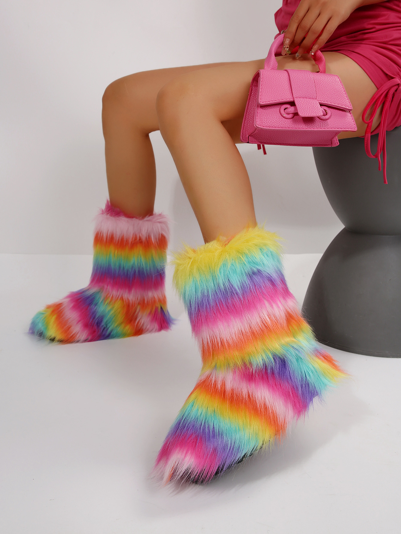 These Plush Mid Calf length Boots are perfect for pairing with any winter outfit during cold weather. The flat soles make walking in them easy and the plush faux fur will certainly keep you warm. Don't forget how stylish they look.